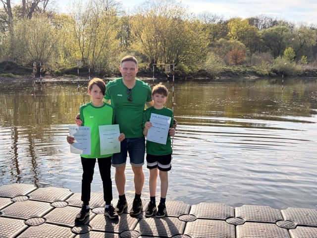 Von den Trainern gut auf die ungewohnten Bedingungen eingestellt, paddelten unsere Kinder aufs Treppchen. Greta Briebsch wurde 2. bei den U12 Schülerinnen, Pepe Blank 3. im U12 K1 der Schüler und zusammen mit Thore Freimark erkämpften sie im Mannschaftsrennen 3 x K1 den 3.Platz. Vorher war Thore in seinem Einzelrennen U10 K1 auf Platz 4 gekommen.