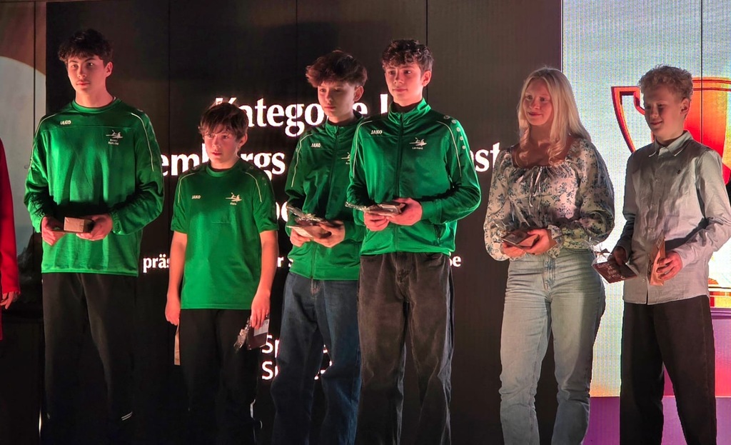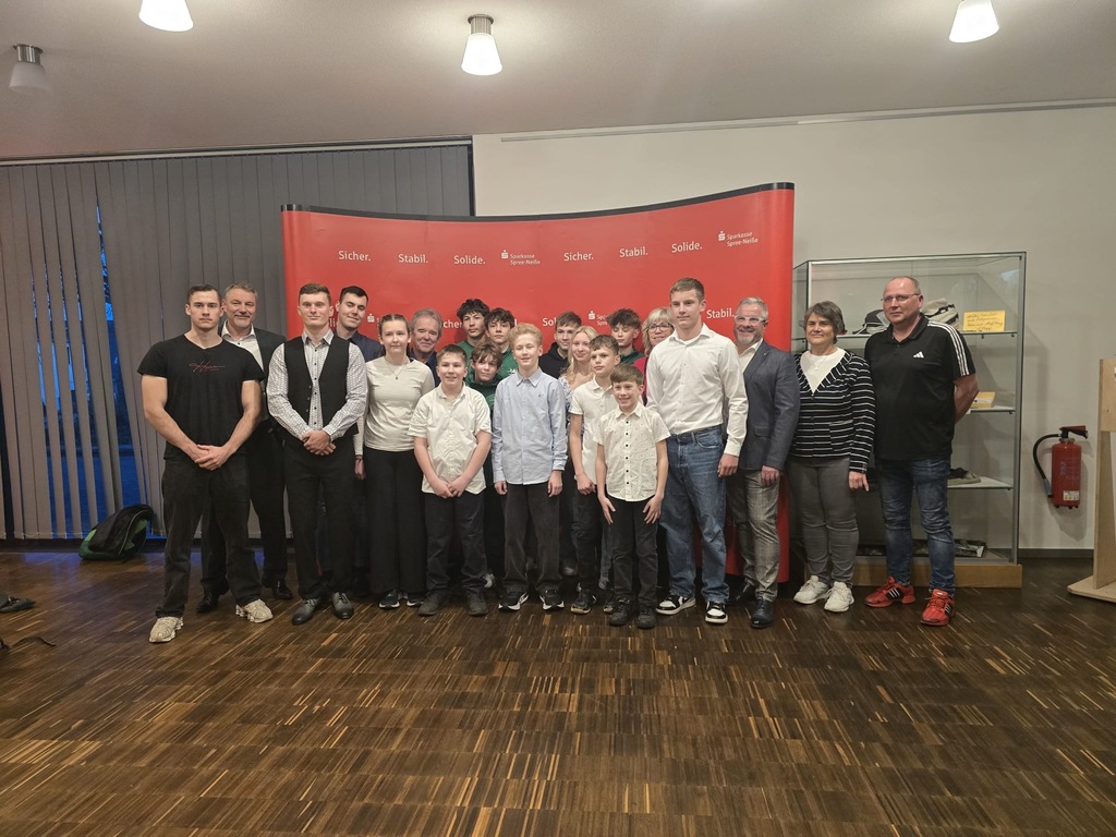 Im Sportjahr 2025 waren das von der SG Einheit 16 Kanuten vom Bronzemedaillengewinner bei der JWM Tim Ole Methner (18 Jahre) bis zum Landesmeister Leonard Stolle (9 Jahre). 11 Rennkanuten und 5 Slalomkanuten wurden geehrt unter ihnen unser 3facher Deutscher Meister Oliver Rapsch, Hope-Games-Gewinner im K1 über 1000m Norwin Grüneich oder der 3fache Landesmeister und 4fache Silbermedaillengewinner bei der ODM Karl Scheetz! Unvergessen auch der Spremberger C4 Sch B, der in der Besetzung Conny Jetosch- Josef Thauer - Phillip Quickert - Karl Scheetz unangefochten Landesmeister wurde. Die Slalomkanuten Alois und Alfons Kießlich, Lenhard Seidlitz und Arvid Nicko wurden für ihre Medaillengewinne bei der Ostdeutschen Meisterschaft auf die Bühne gebeten genauso wie unsere "Heros" im Kanu-Marathon Vanessa John und Lukas Szymanski, die 2025 erfolgreich im Weltcup (Vanessa) und bei DM ( Lukas) unterwegs waren.