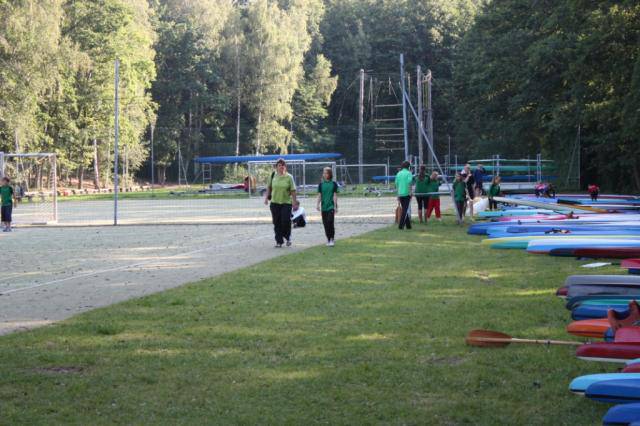 ... war wieder eine super Sache für unseren Nachwuchs. 16 Sportler und 2 Helfer verbrachten bei sommerheißen Temperaturen zusammen mit weiteren 90 Kanukindern aus dem Land Brandenburg eine schöne Ferienwoche im Jugendbildungszentrum Blossin. Sie trainierten mit Gleichaltrigen in Landestrainingsgruppen und bereiteten sich auf die nächsten Aufgaben vor. So wurde an der Bootssicherheit, der Paddeltechnik und der Grundlagenausdauer „gepfeilt”! Bei einem Triathlon kämpften alle um Medaillen - Maurice Dolezel, Steven Exner, Annalene Sammler und Paul Kusch gewannen Gold, Michelle Petermann unterlag beim Schwimmen Sarah Kusch - dennoch freuten sich beide über Silber und Bronze. Neben dem täglichen Training kam natürlich auch das Baden nicht zu kurz. Alle nahmen begeisternd am Neptunfest teil - Patricia Schwarz wurde „gackender Goldfisch” getauft. Eine Nachtwanderung zum Abschluss des Lagers, die Steven und Sophie verschlafen haben, war noch mal ein echter Höhepunkt. Willy Engel und Niklas Knuppe sammelten erste Erfahrungen als Übungsleiterhelfer und begleiteten mit viel Einsatzbereitschaft und Freude eine Trainingsgruppe. Rund um erlebten alle tolle Ferien, trainierten fleißig und haben wieder etwas dazu gelernt.
